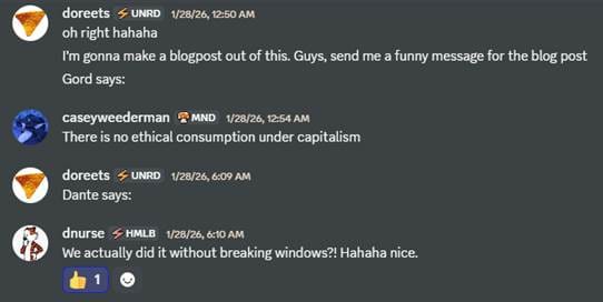 Here's a snippet from the group chat where I was crowdsourcing opinions: